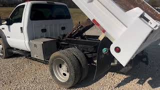 2005 FORD F450 DUMP TRUCK VN:1FDXF46P15EA08946 powered by 6.0L diesel engine, equipped with automatic transmission, Rugby steel dump bed, 16,000lb GVWR, 225/70R19.5 tires, dual wheel single axle.