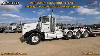 2007 KENWORTH T800 TRUCK TRACTOR VN:1XKDPBTX07J198525 powered by Cat C15 diesel engine, equipped with Eaton 18 speed transmission, power steering, engine brake, sliding 5th wheel, wet kit, dual exhaust, headache rack, (2) fuel tanks, double frame, differential lock, air suspension, 21,000lb air lift third axle, 46,000lb rears, 385/6522.5 front tires, 11R24.5 rear tires, triaxle.