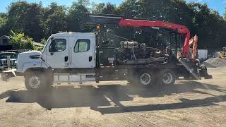2012 FREIGHTLINER 108 BOOM TRUCK VN:1FVHG5BS1CHBW1786 powered by Cummins ISC 8.3 diesel engine, 350hp, equipped with Road Ranger 8LL transmission, crew cab, 16ft. bed w/ boxes, Palfinger PK15500 performance knuckleboom crane(sn:10010637), wireless remote, air ride suspension, 315/80R22.5 front tires, 11R22.5 rear tires, tandem axle, 85,520 miles.