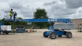 2015 GENIE S-60X BOOM LIFT SN:S60X15A-30016 4×4, powered by diesel engine, equipped with 60ft. Platform height, straight boom, 500lb lift capacity. Located: 24010 HWY 249 Tomball, TX 77375.