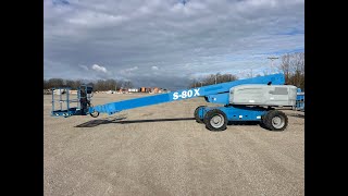 GENIE S-80X BOOM LIFT SN:S80X13-10430 4×4, powered by diesel engine, equipped with 80ft. Platform height, straight boom, 500lb lift capacity. Located: 22111 W Industrial Park. Genoa, OH 43430.